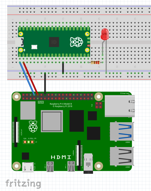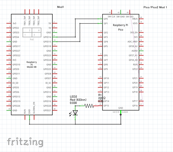 まず最初はラズパイとpicoを有線でつなぎ